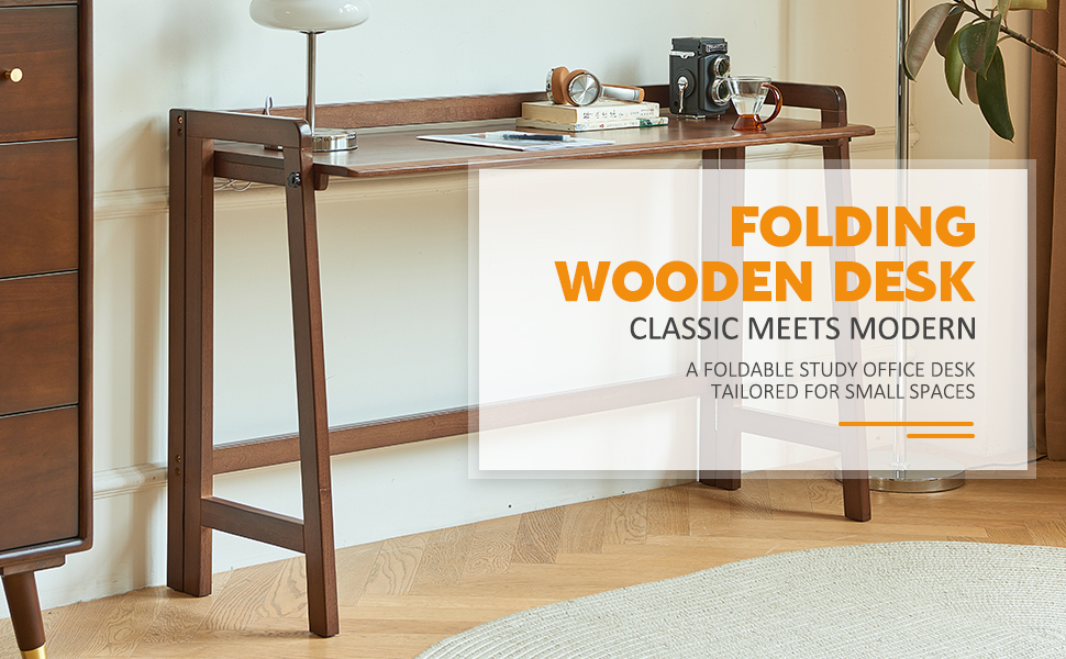 Amazon com: Solid Wood Folding Desk Mid Century Modern Desk 39