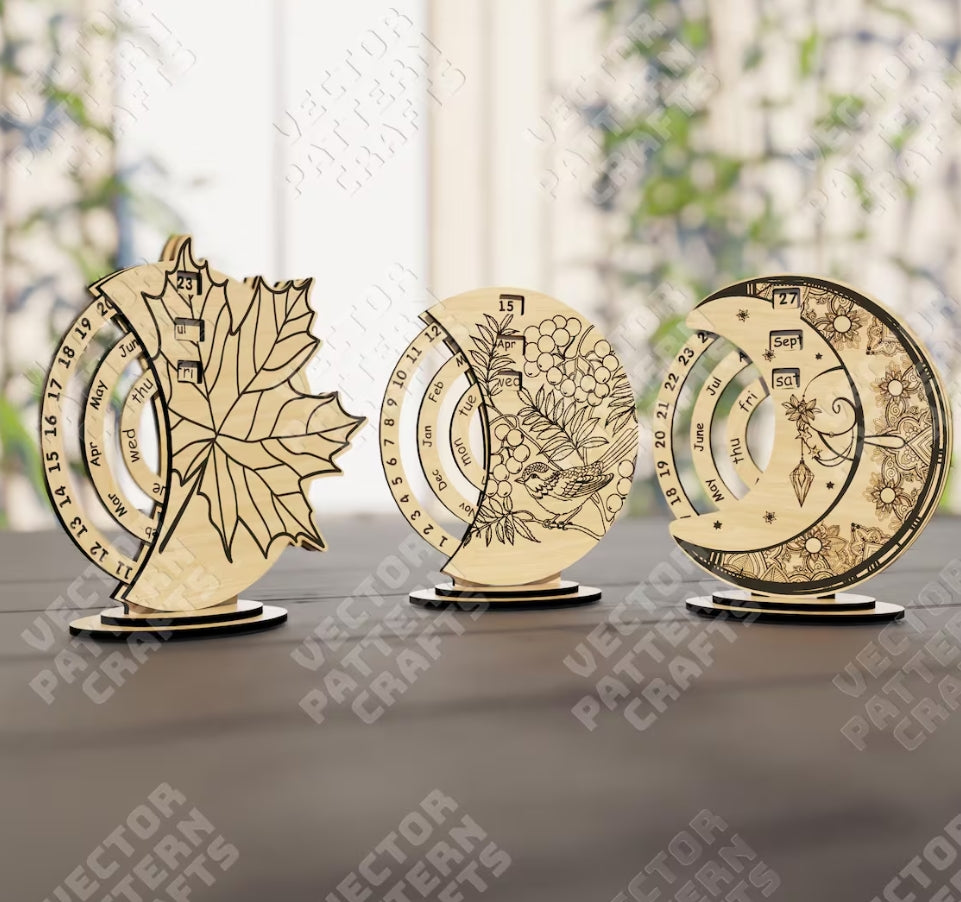 Wooden desktop perpetual calendar 3 bundle laser cut svg file