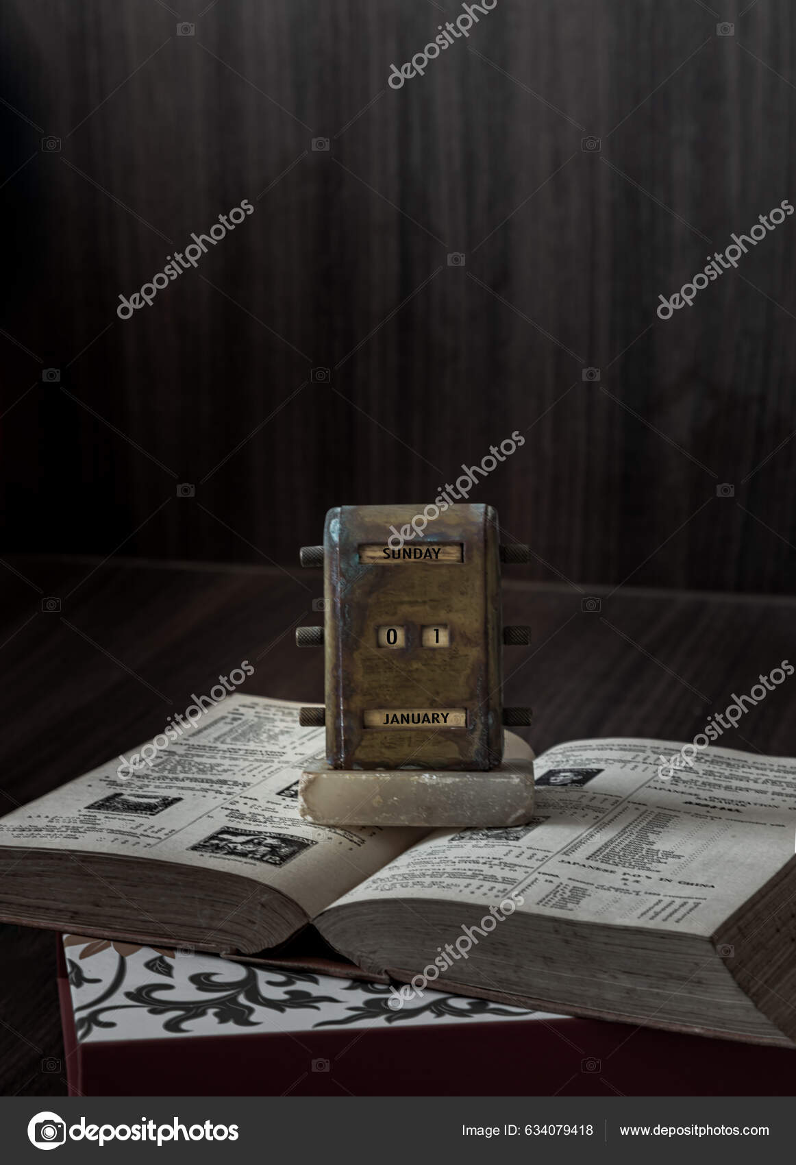 Bangkok Thailand Dec 2022 Old Antique Brass Desktop Perpetual Calendar