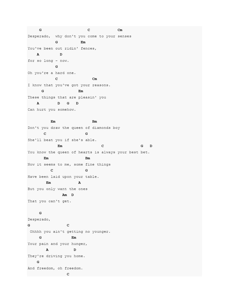 Desperado (Piano Vocal Guitar Chords (Right Hand Melody))