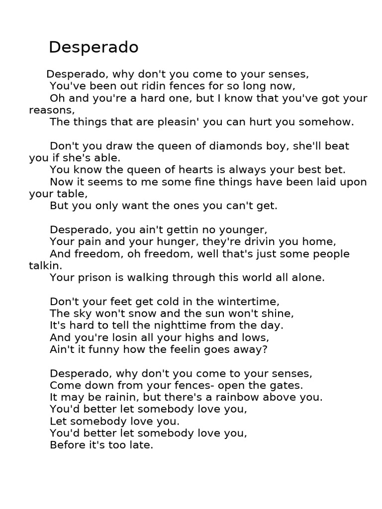 Eagles Desperado Lyrics Meaning MelodyInsight