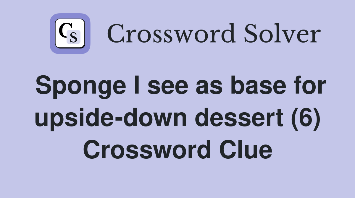 Sponge I see as base for upside down dessert (6) Crossword Clue