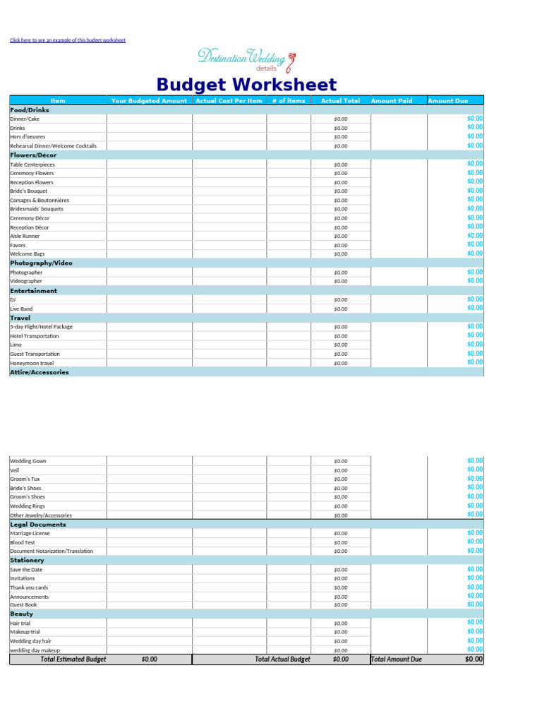 Here are some of the images for Destination Wedding Budget Template that we found in our website database.