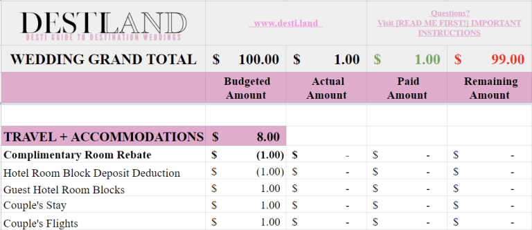 DESTI Destination Wedding Budgeting FREE DOWNLOADABLE SPREADSHEET