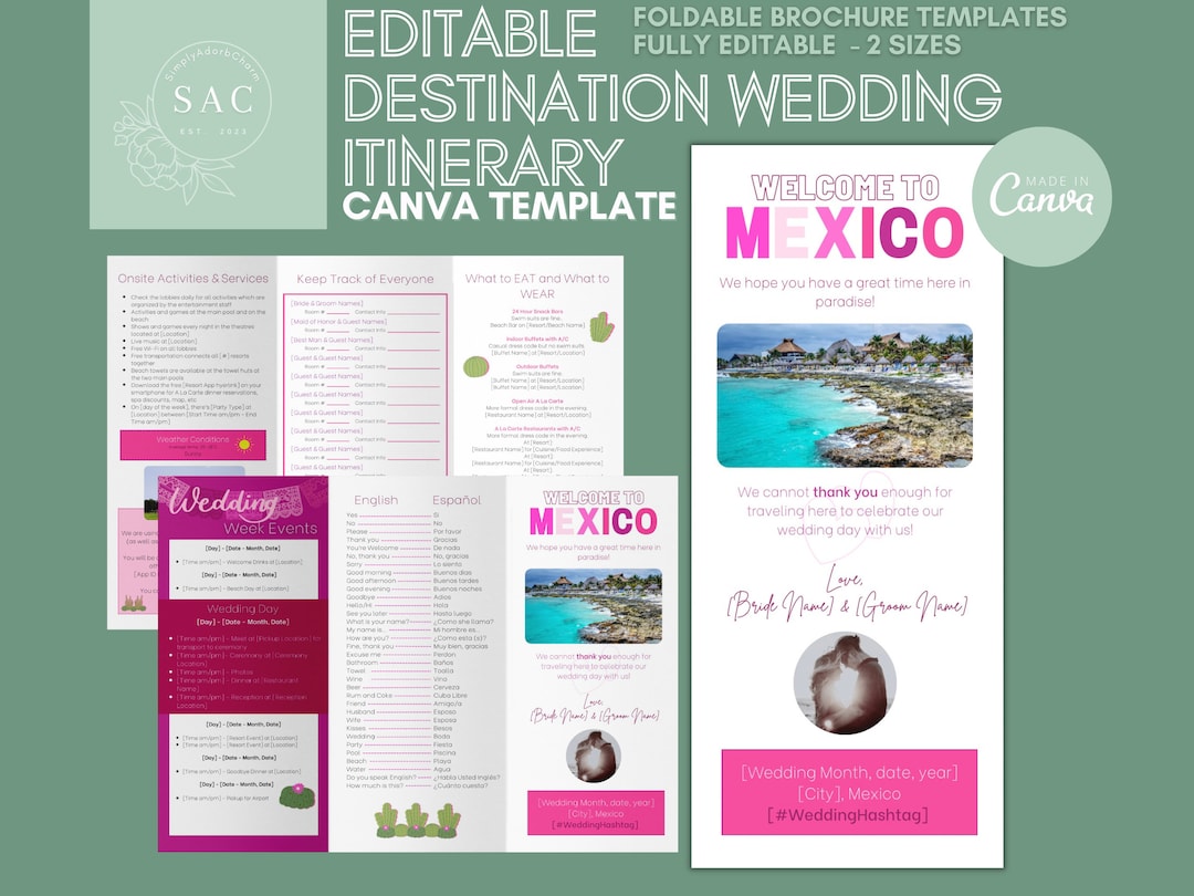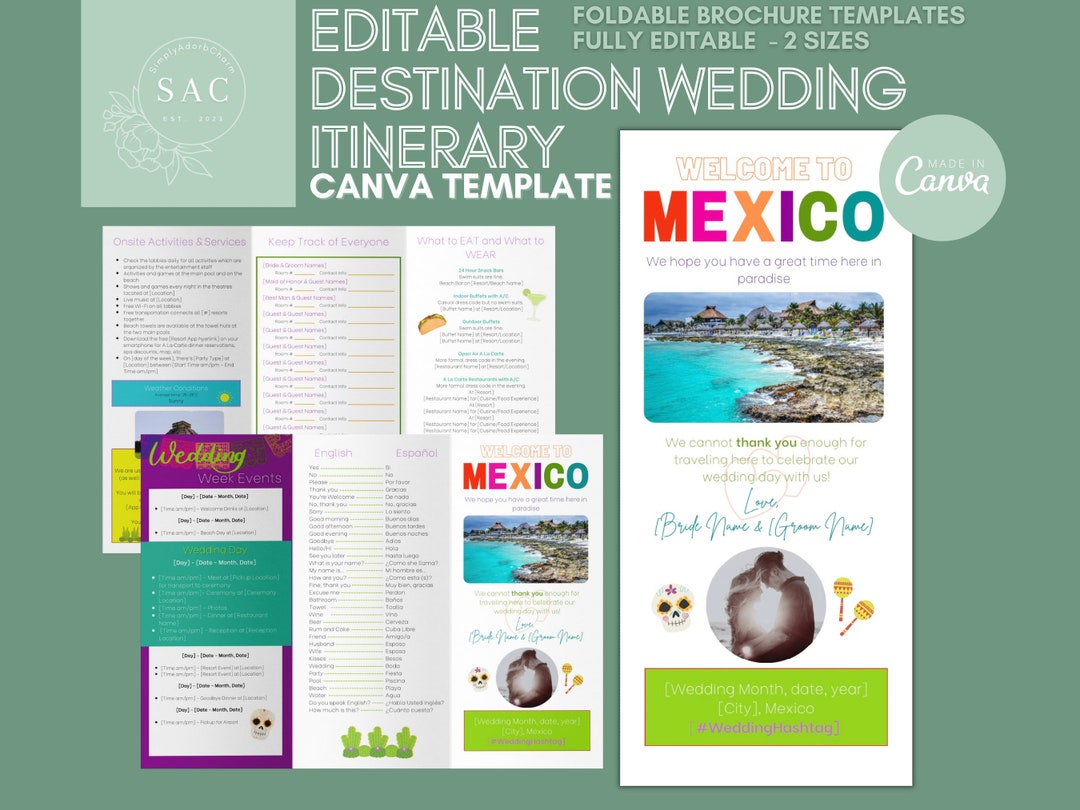 Destination Wedding Template Editable Canva Template Mexico Wedding
