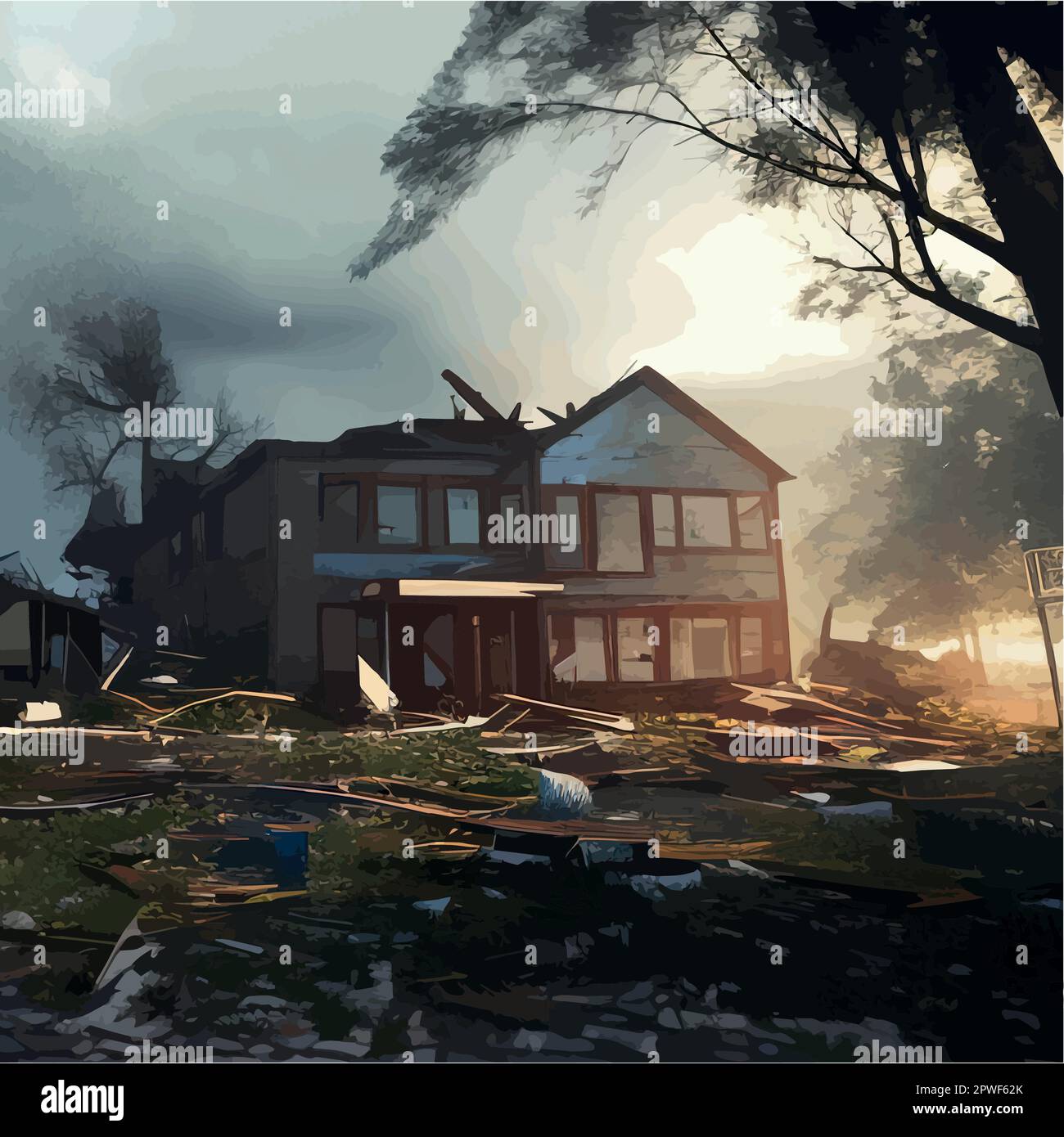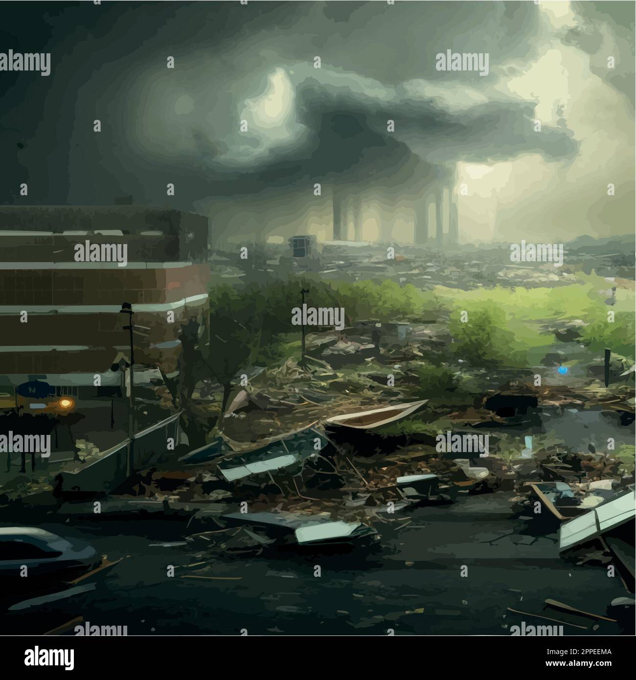 Town Left in Ruins after Destructive Conflict Stock Illustration