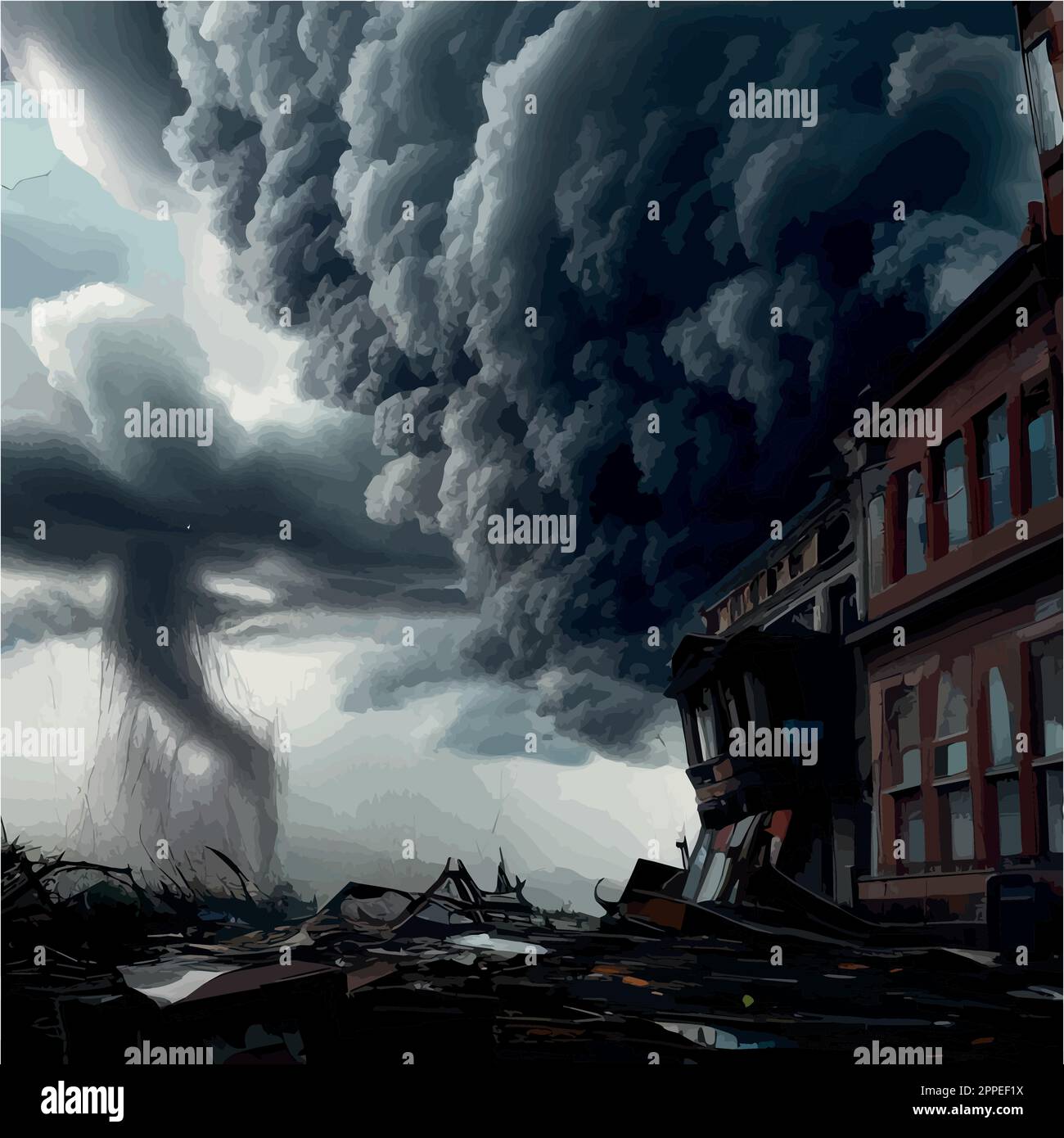Powerful and Destructive Tornado Illustration Generated by AI Stock