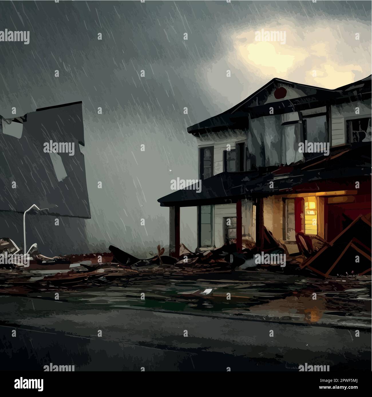 Tornado Ripping Havoc in Neighborhood Representing the Destructive