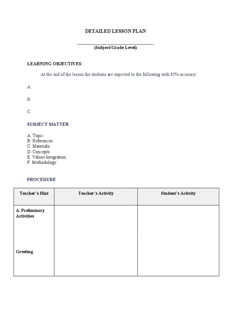 Detailed Lesson Plan Template PDF Learning Lesson Plan
