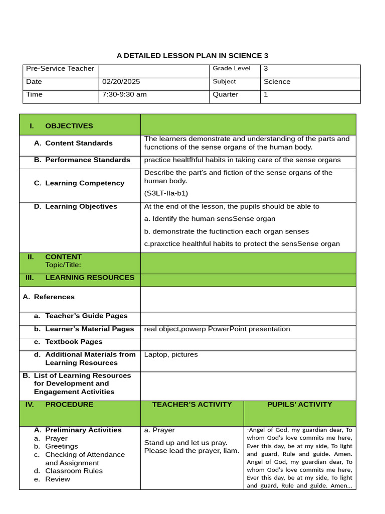 Detailed Lesson Plan Template PDF Curriculum Learning