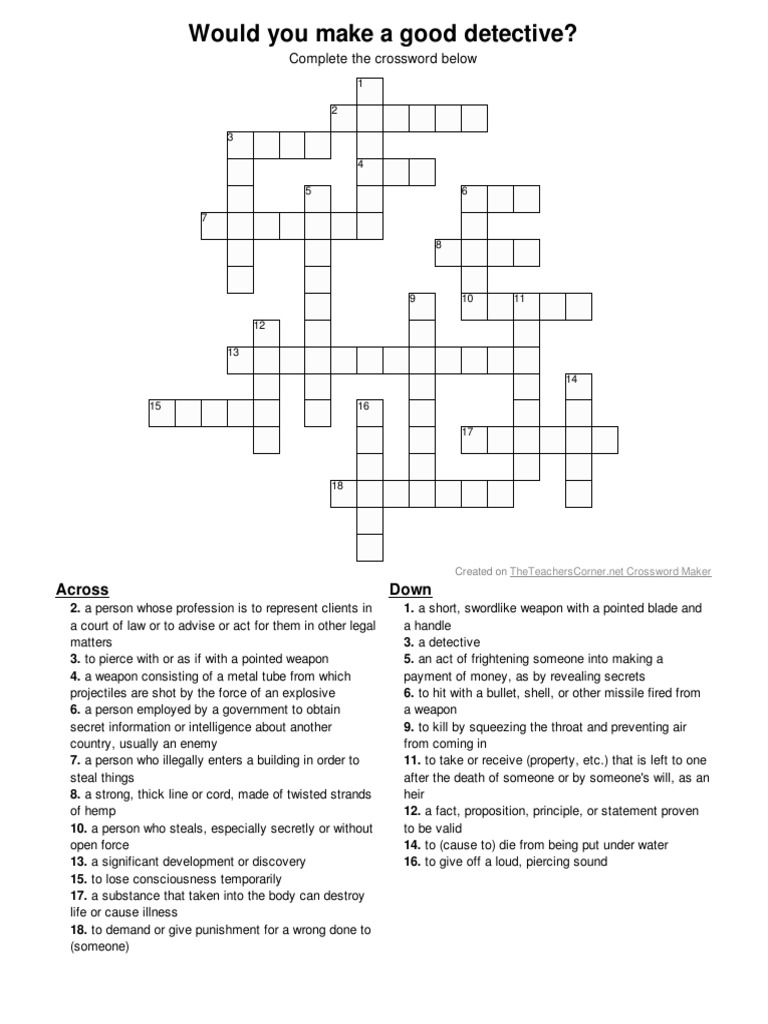Would You Make A Good Detective Crossword Puzzle PDF