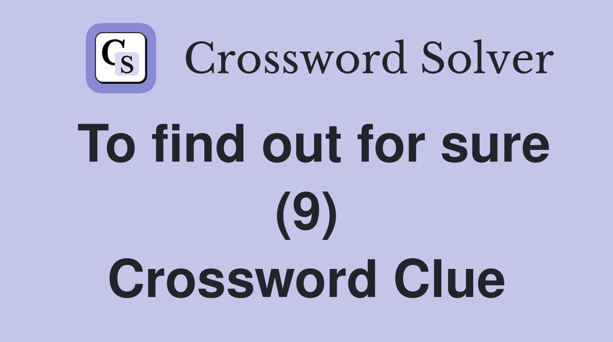 To find out for sure (9) Crossword Clue Answers Crossword Solver