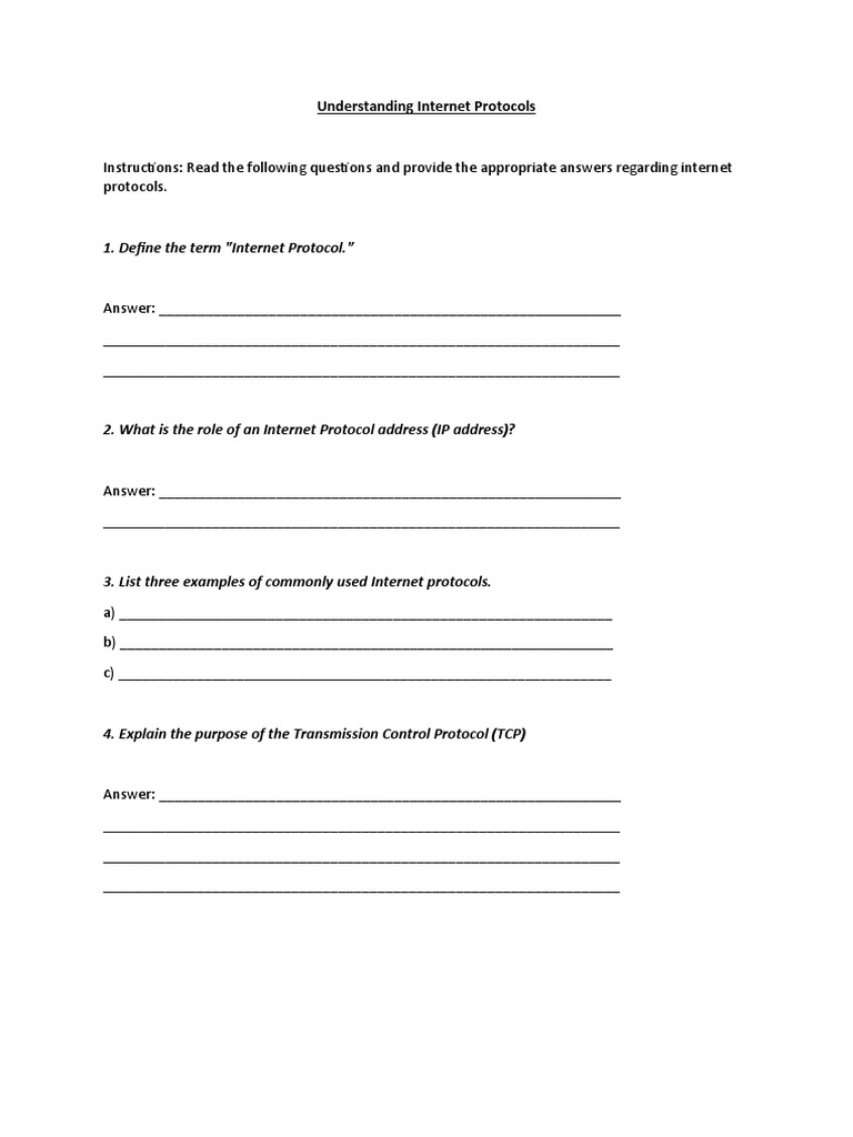 Internet Protocols Worksheet PDF Internet Protocol Suite Internet