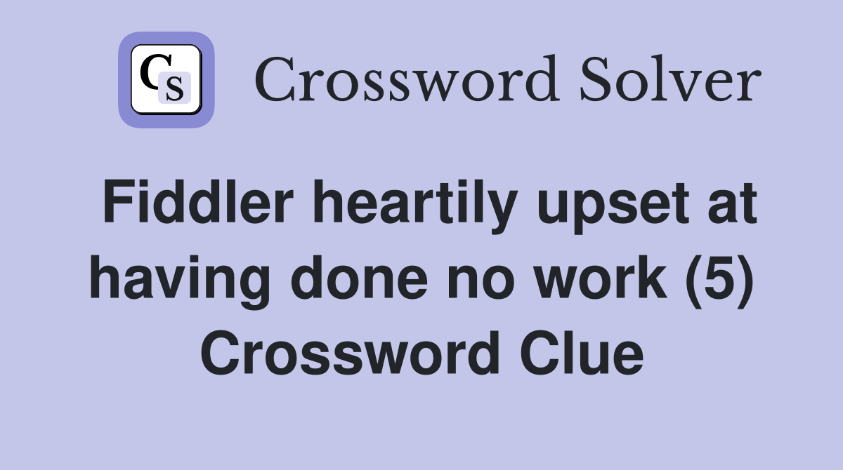 Fiddler heartily upset at having done no work (5) Crossword Clue