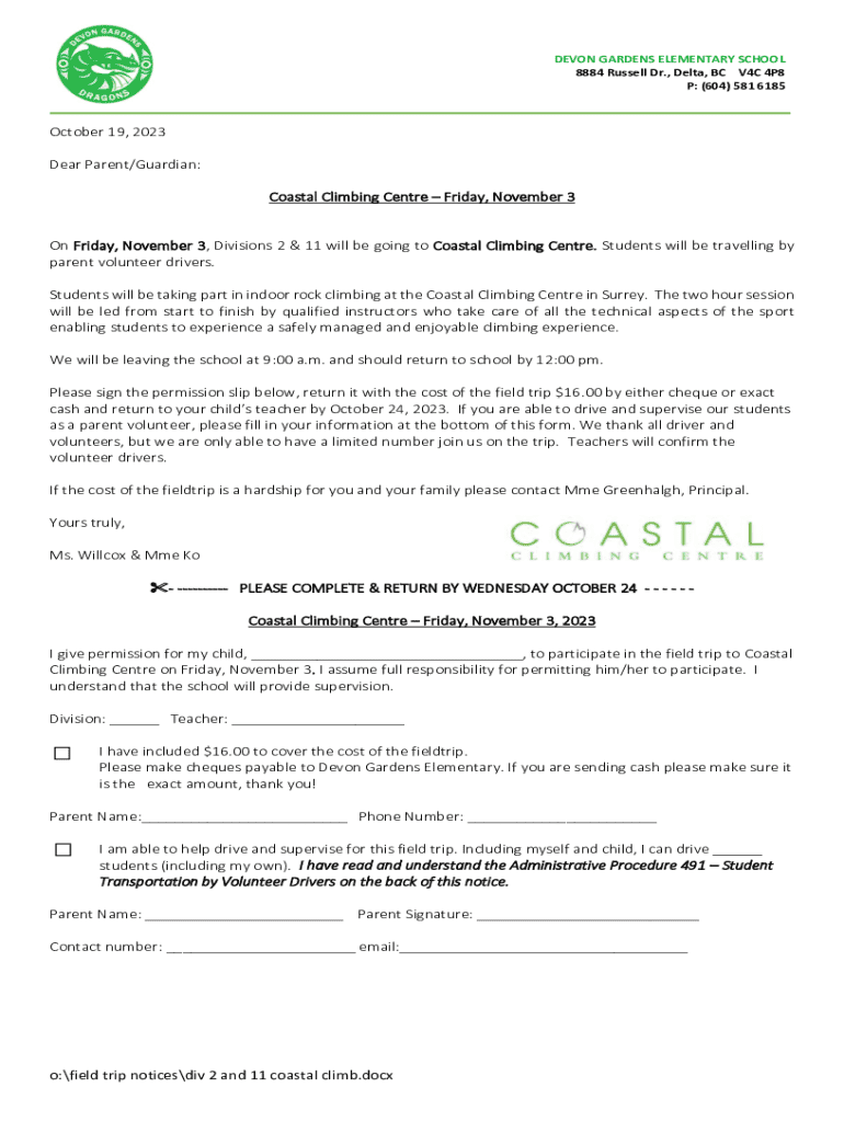 Fillable Online School Year Calendar Devon Gardens Elementary Fax