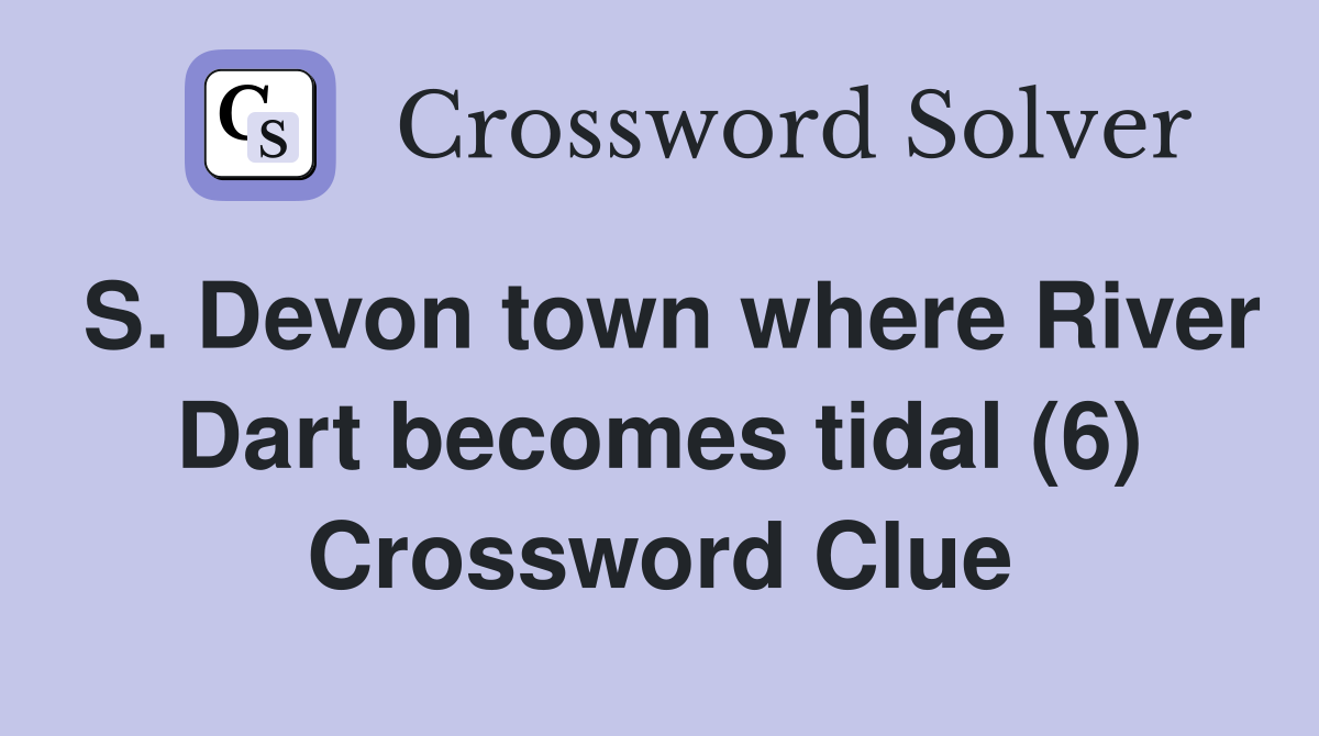 S Devon town where River Dart becomes tidal (6) Crossword Clue
