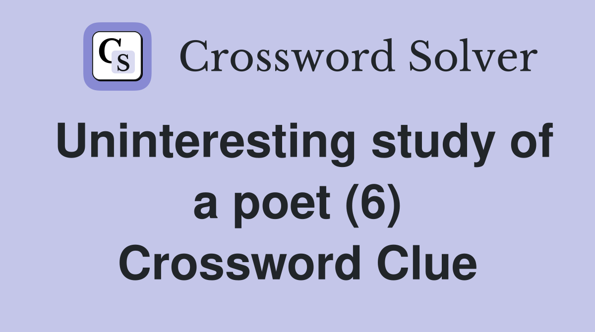 Uninteresting study of a poet (6) Crossword Clue Answers Crossword