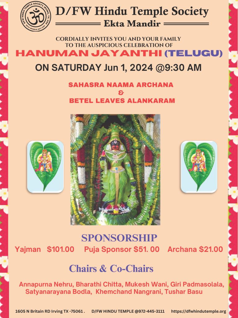 Sri Narasimha Jayanthi DFW Hindu Temple Society