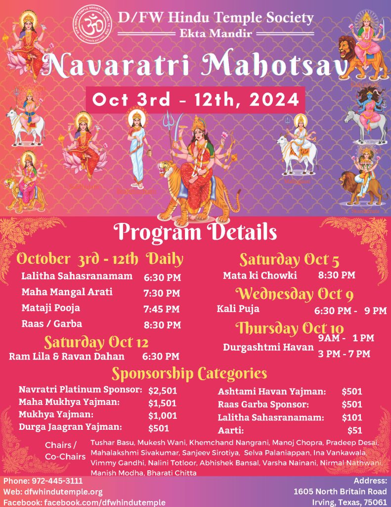 Navratri Mahotsav Durga Jagran DFW Hindu Temple Society