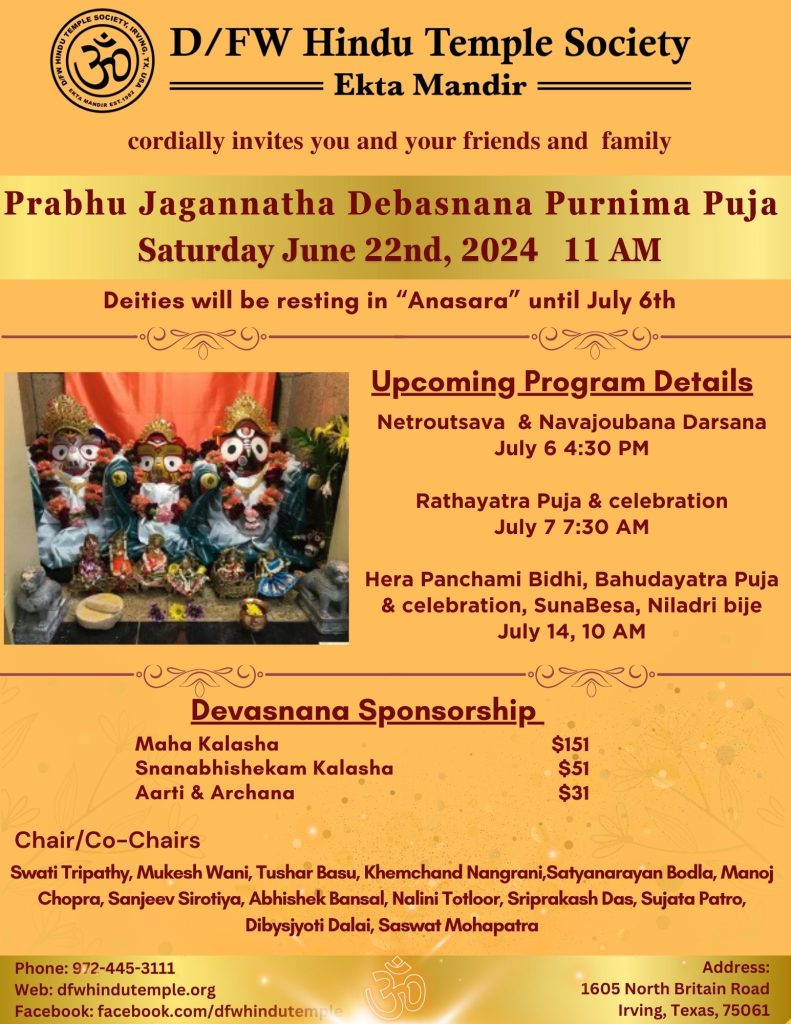 Prabhu Jagannatha Debasnana Purnima Puja DFW Hindu Temple Society