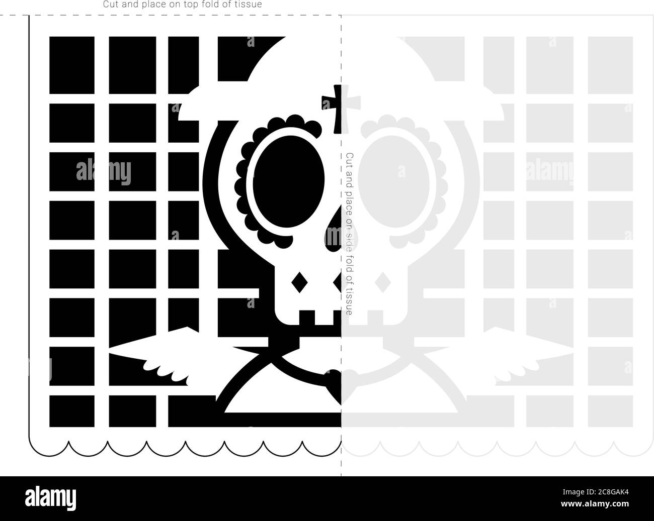 Papel picado stencil template Dia de Muertos banner blueprint Stock