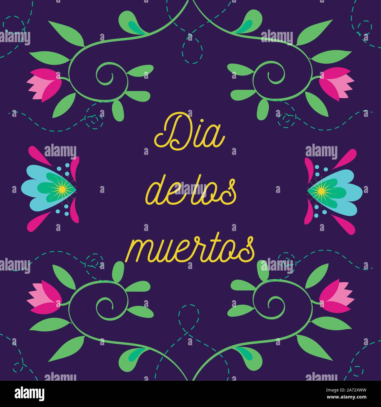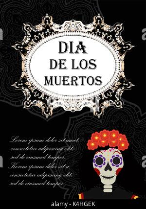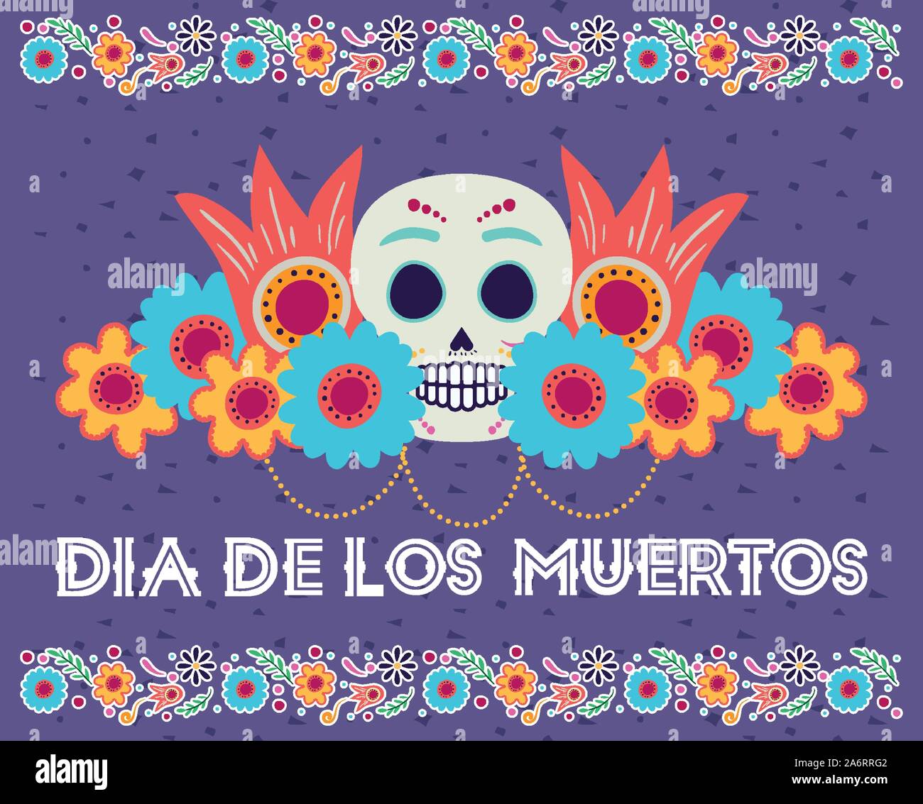 dia de los muertos card with head skull and flowers Stock Vector Image
