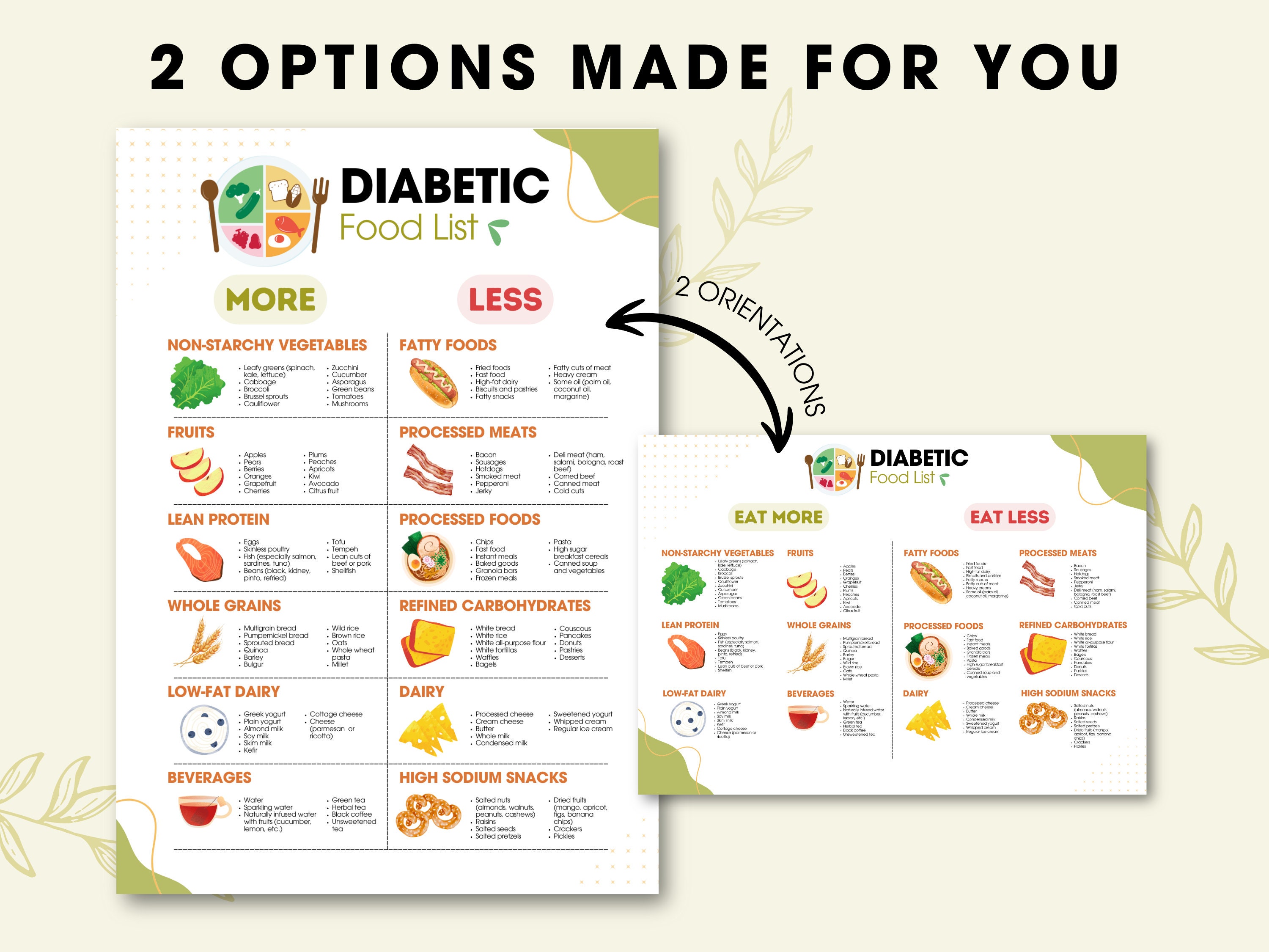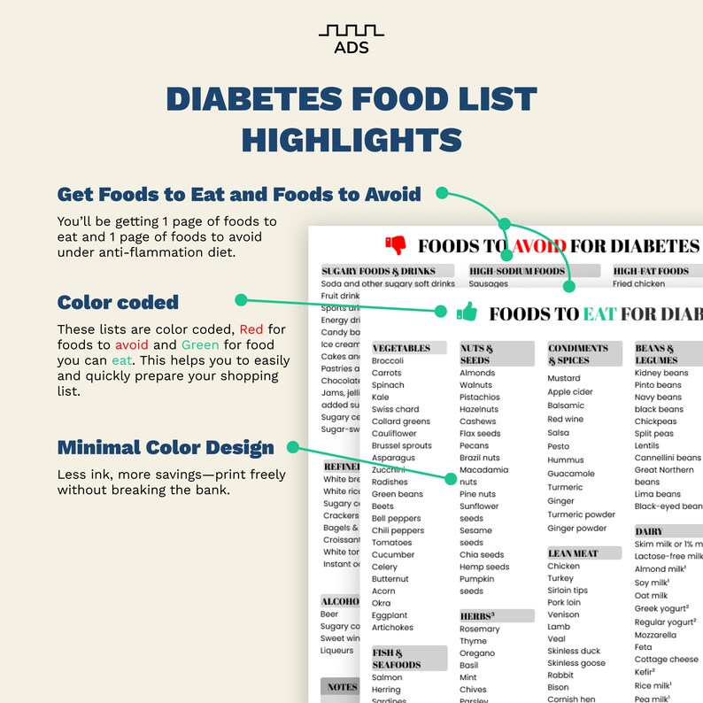 Diabetic Food List Printable PDF Type 2 Diabetes Grocery Etsy Canada