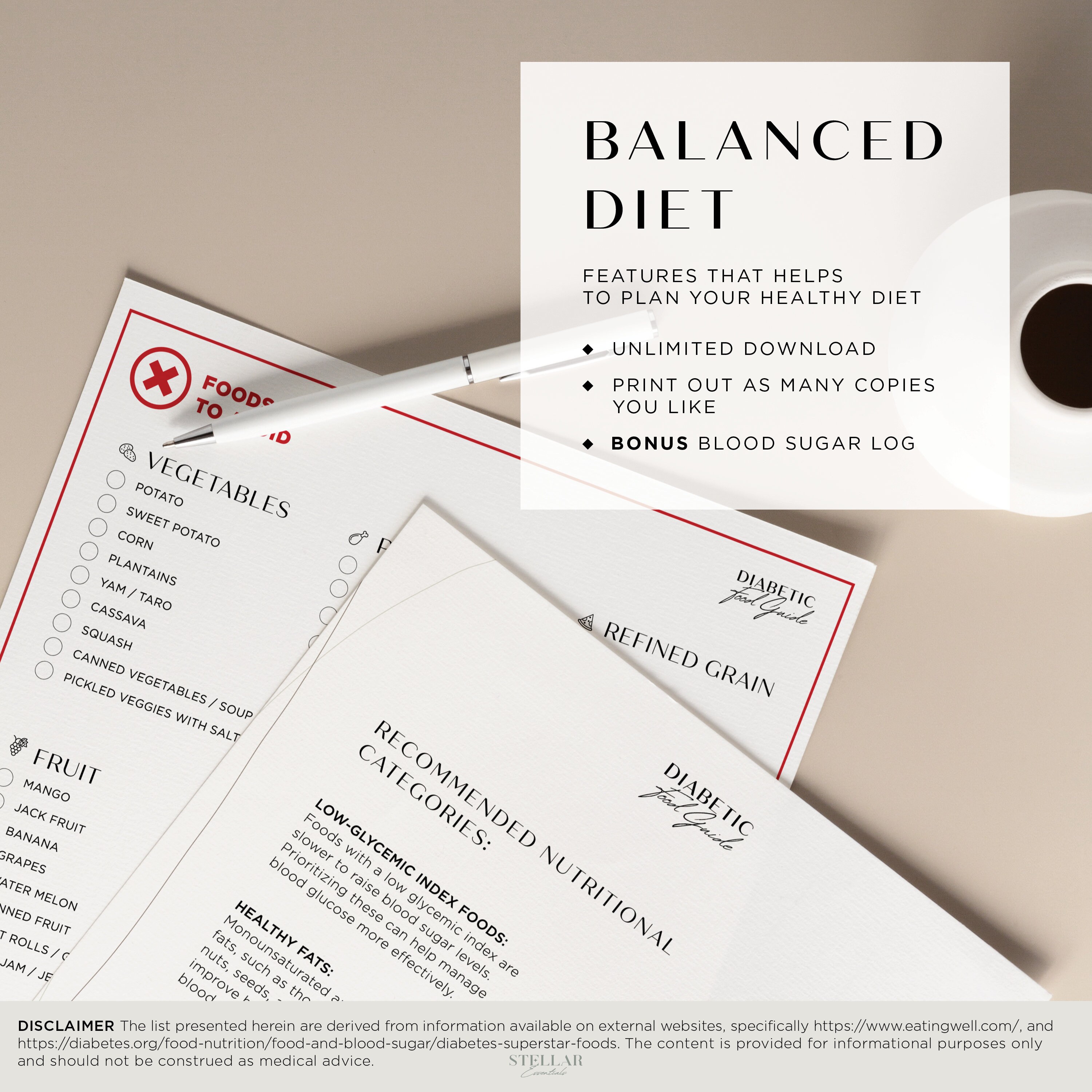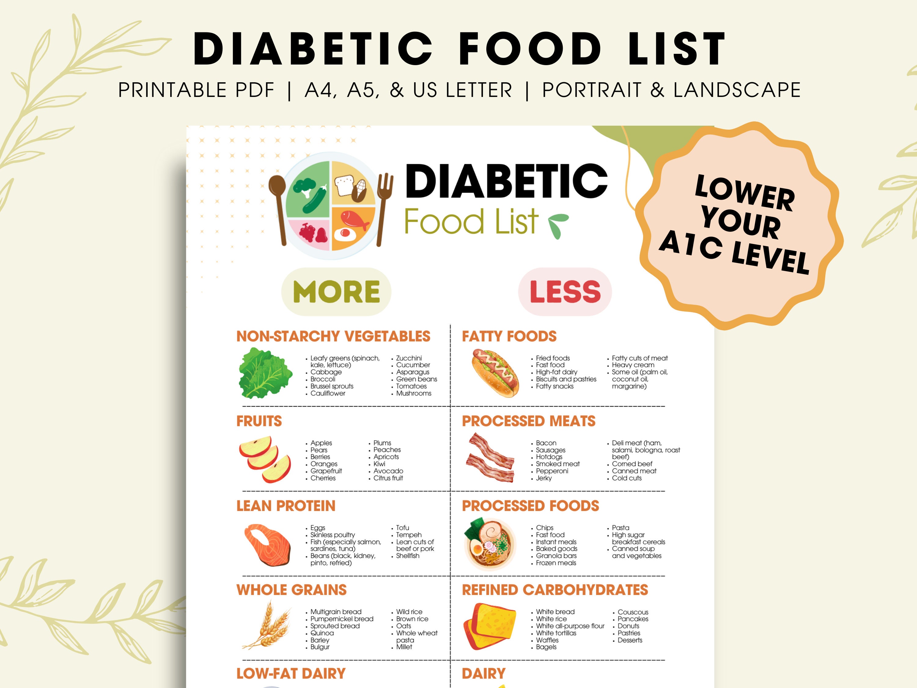 Ultimate Diabetic Food List PDF Printable Guide A4 Letter Size