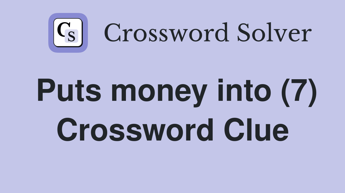 Puts money into (7) Crossword Clue Answers Crossword Solver