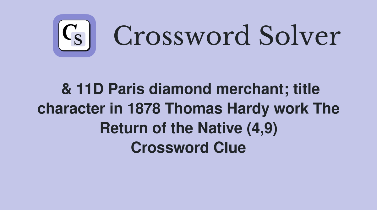 11D Paris diamond merchant title character in 1878 Thomas Hardy work
