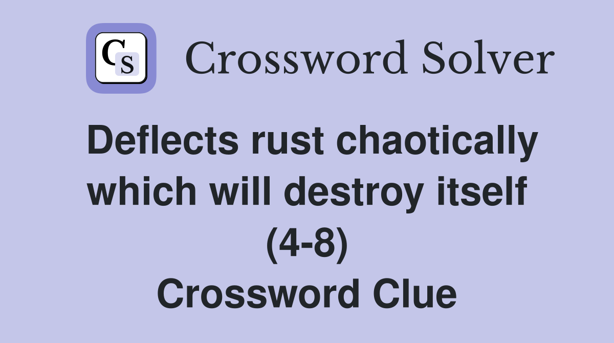 Deflects rust chaotically which will destroy itself (4 8) Crossword