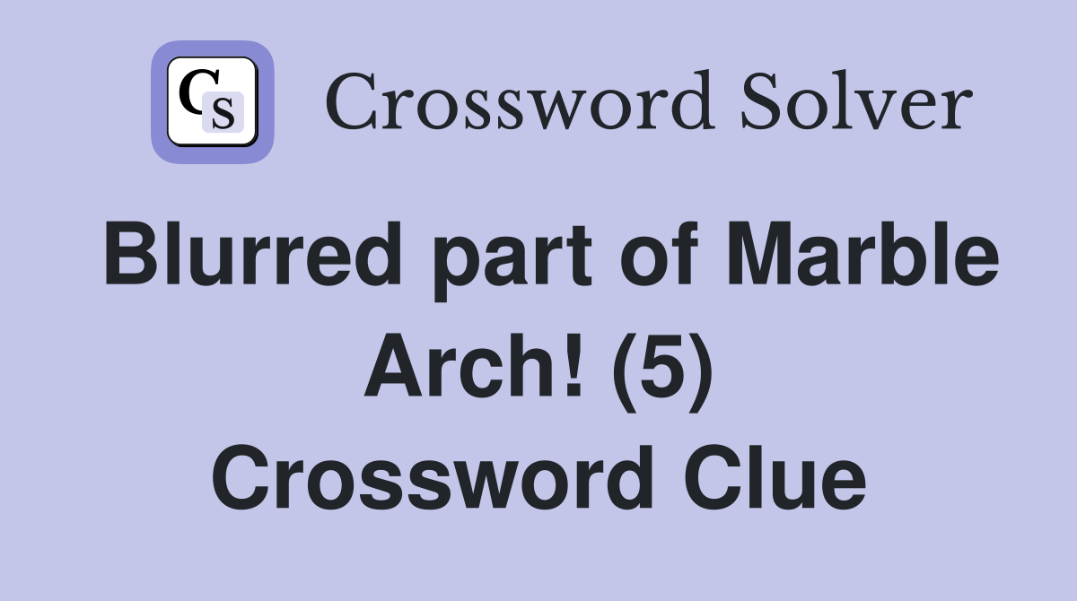 Blurred part of Marble Arch (5) Crossword Clue Answers Crossword