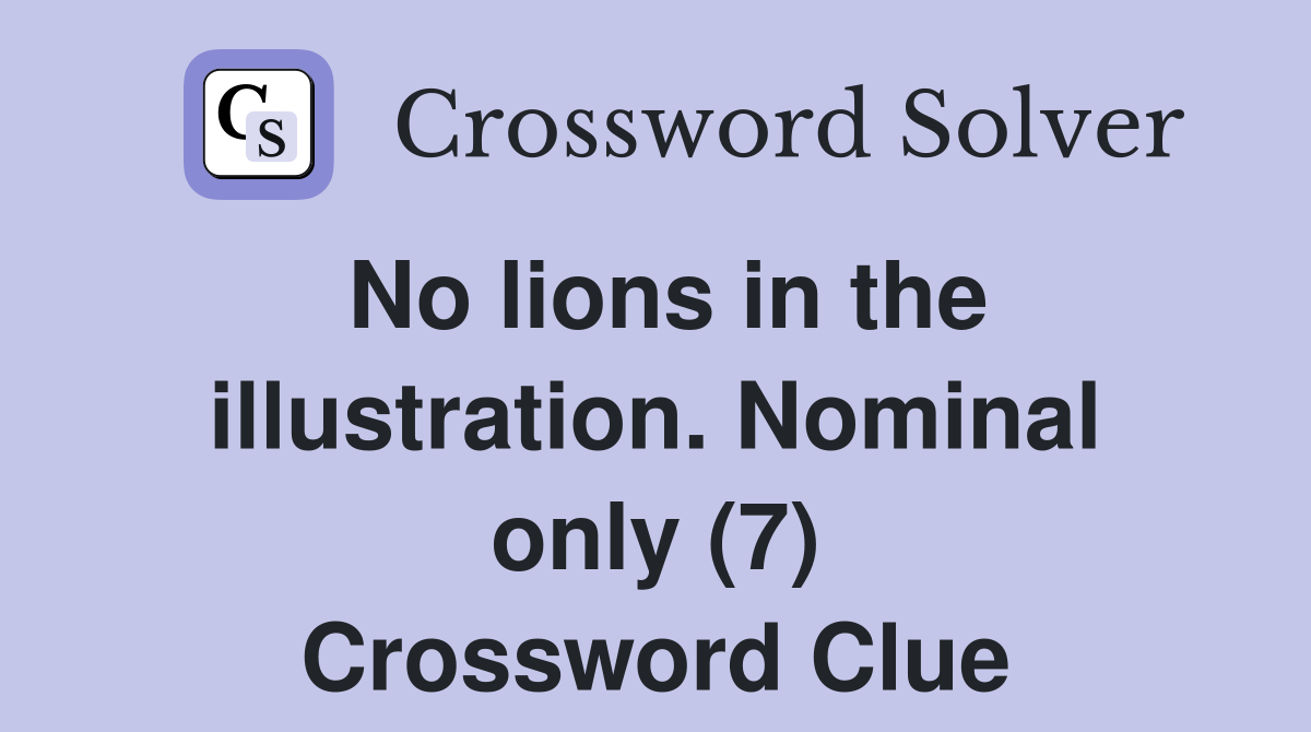 No lions in the illustration Nominal only (7) Crossword Clue Answers
