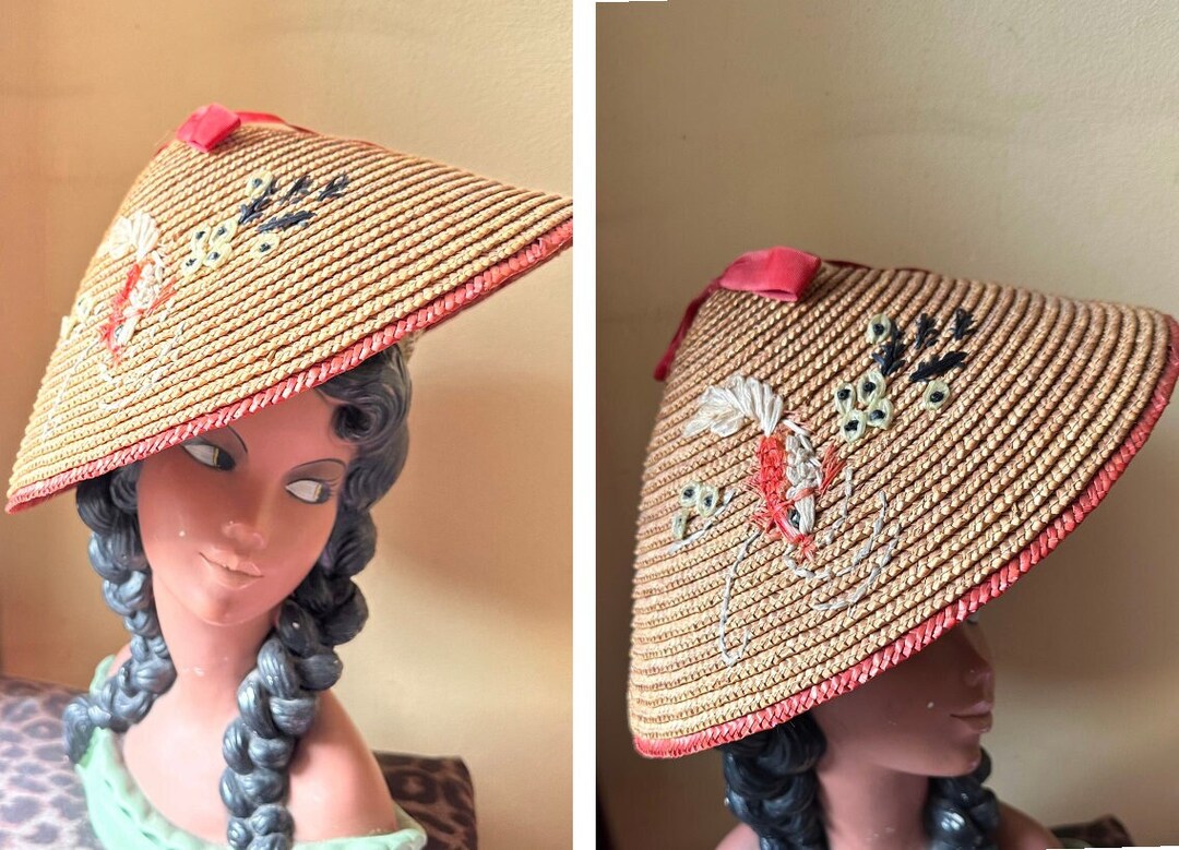 1950s Asian Style Straw Sun Hat Etsy