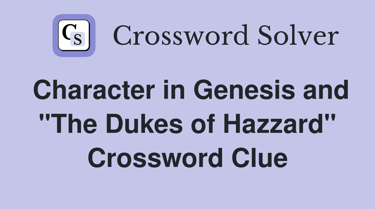 Character in Genesis and quot The Dukes of Hazzard quot Crossword Clue
