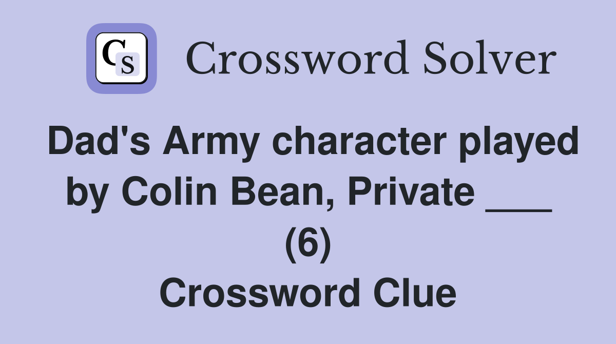 Dad #39 s Army character played by Colin Bean Private (6) Crossword