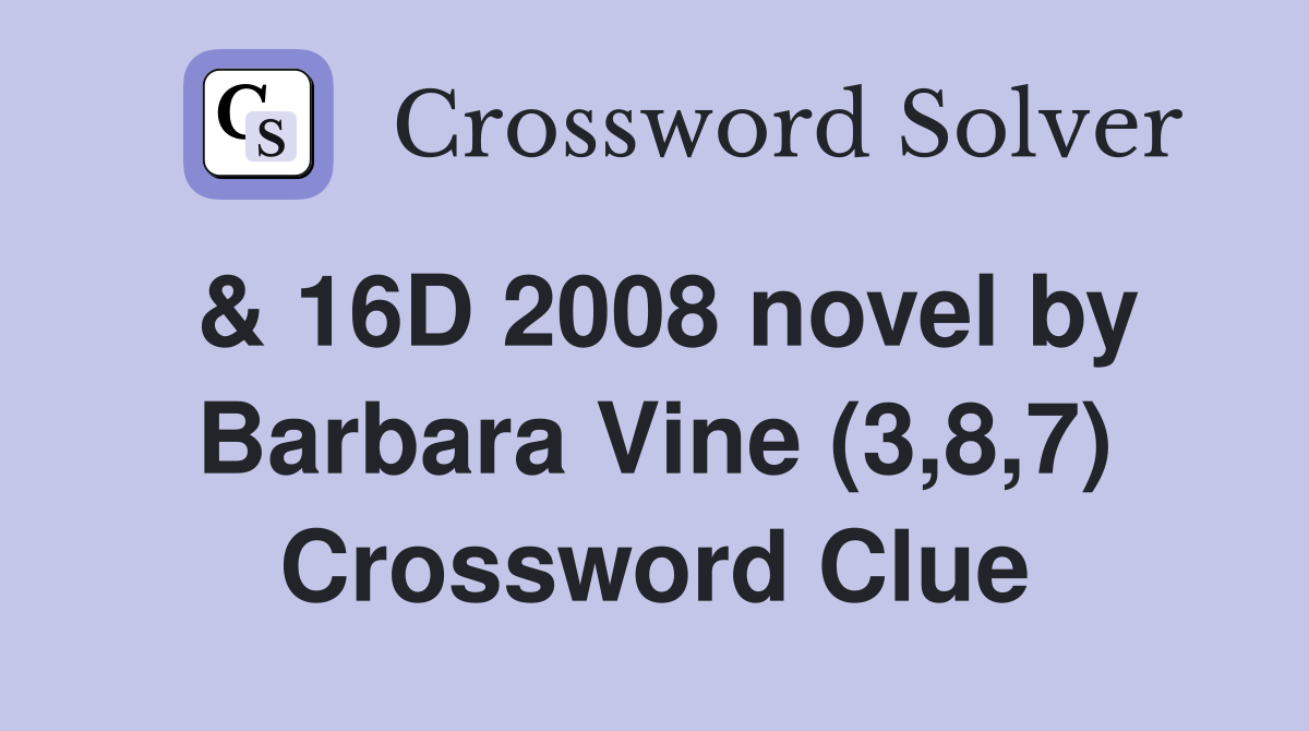 16D 2008 novel by Barbara Vine (3 8 7) Crossword Clue Answers