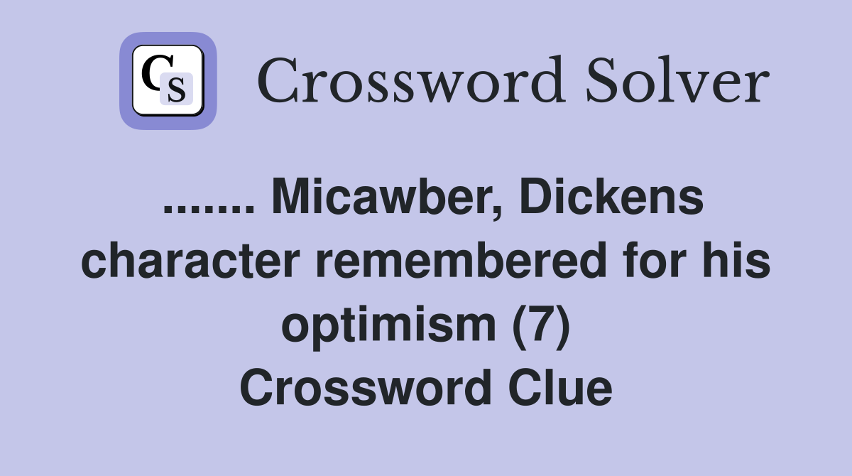 Micawber Dickens character remembered for his optimism (7) Crossword