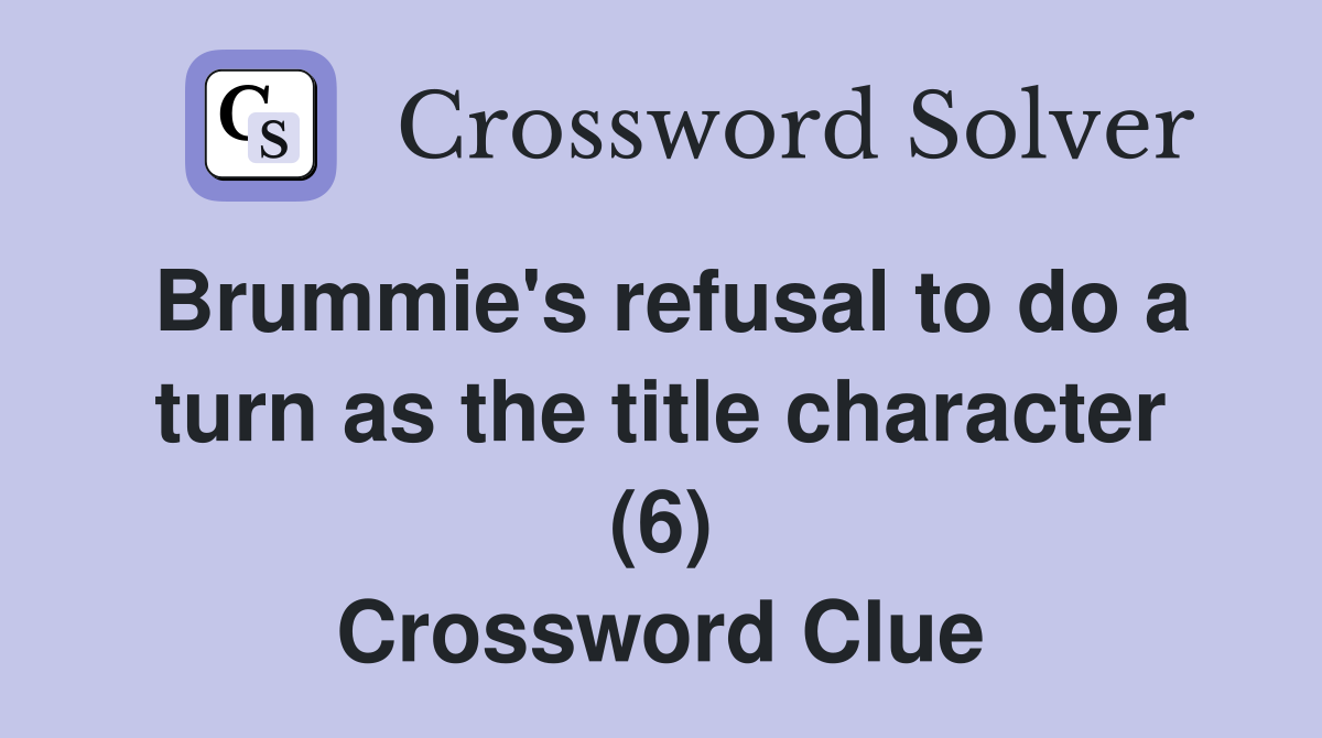 Brummie #39 s refusal to do a turn as the title character (6) Crossword