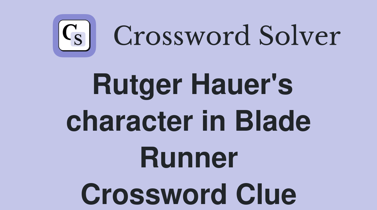 Rutger Hauer #39 s character in Blade Runner Crossword Clue Answers