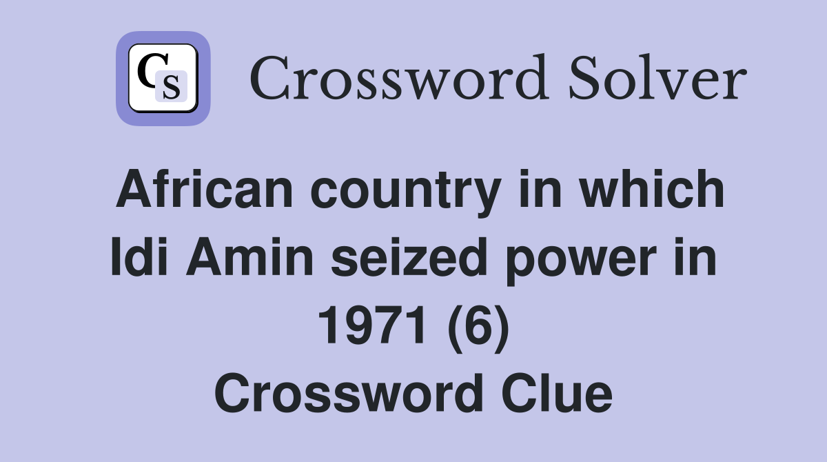 African country in which Idi Amin seized power in 1971 (6) Crossword