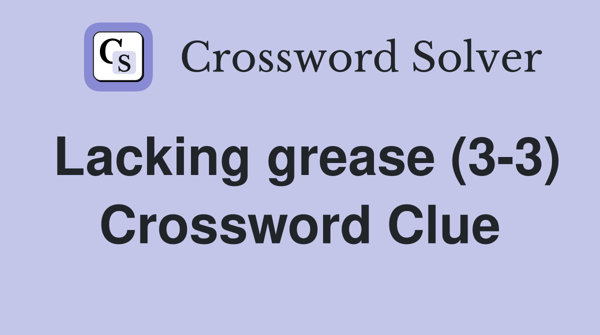 Lacking grease (3 3) Crossword Clue Answers Crossword Solver