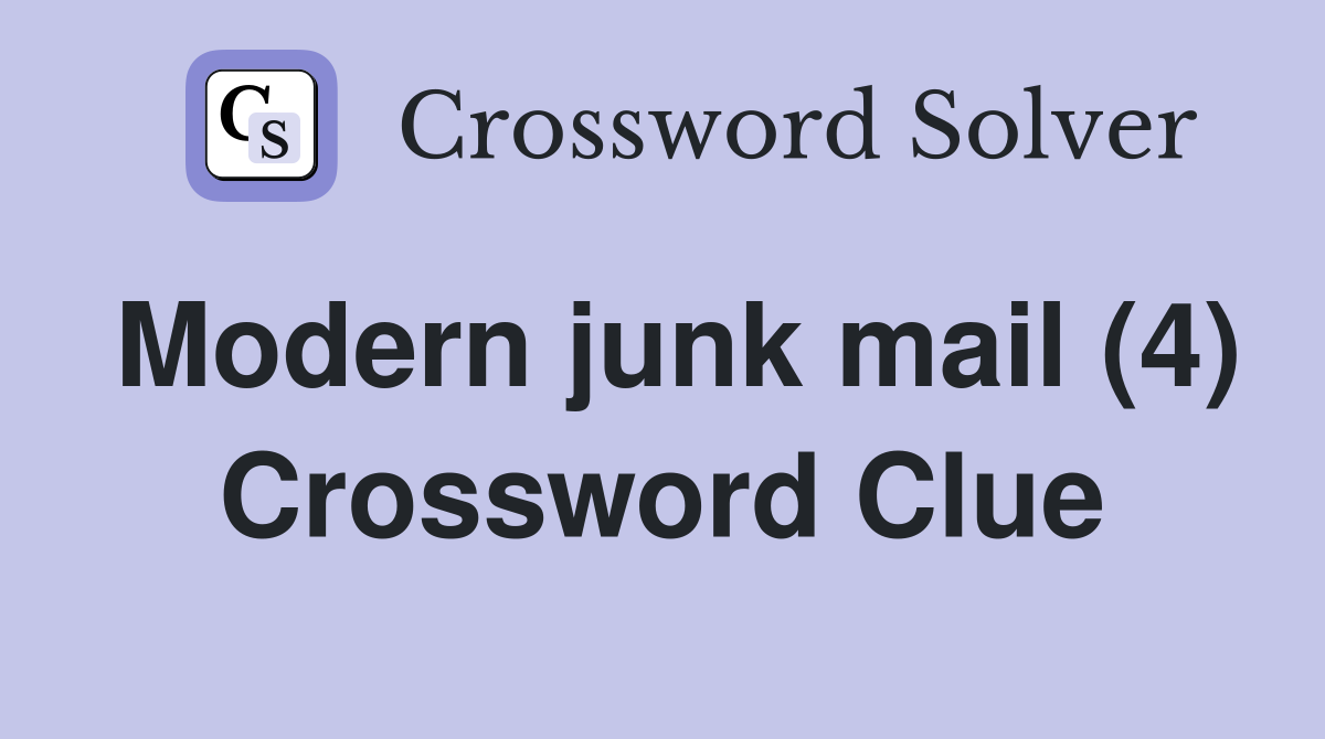 Modern junk mail (4) Crossword Clue Answers Crossword Solver