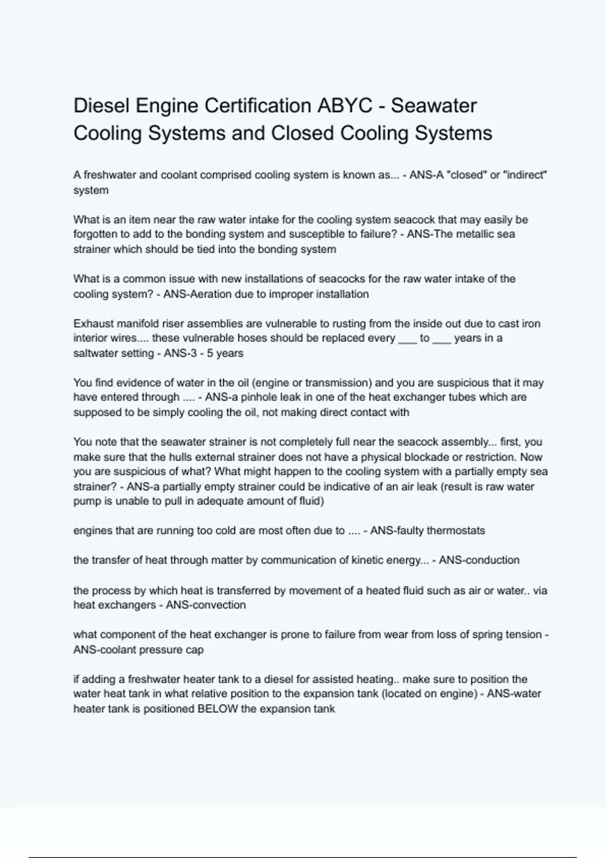 ABYC DIESEL ENGINE CERTIFICATION EXAM 97 QUESTIONS WITH APPROVED