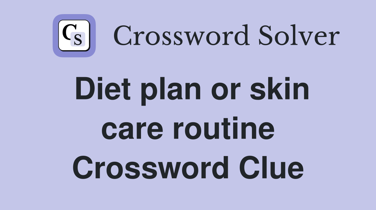 Diet plan or skin care routine Crossword Clue Answers Crossword Solver