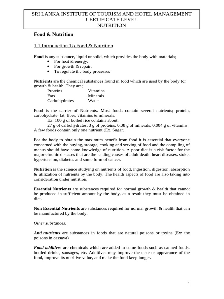 Certificate Level Nutrition Lessons PDF Diet Nutrition Dietary