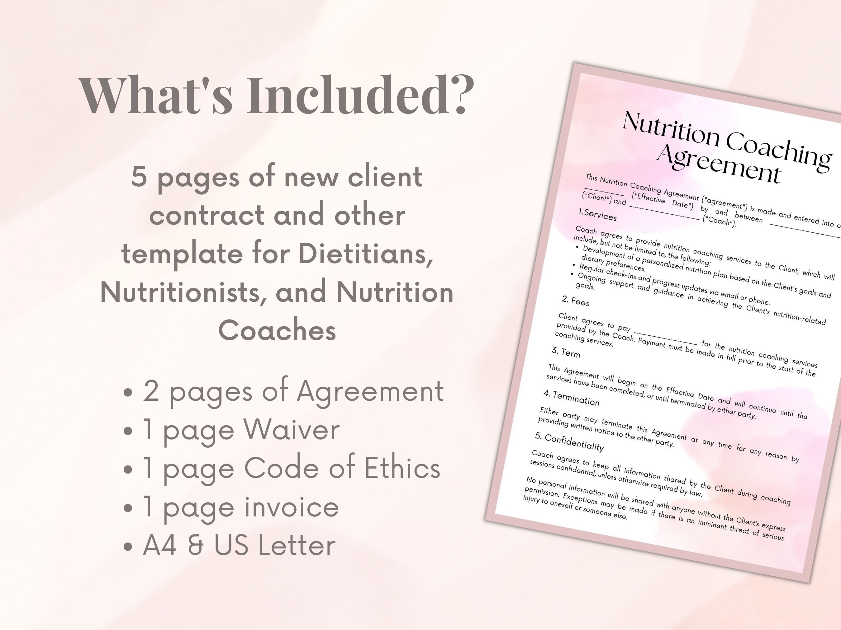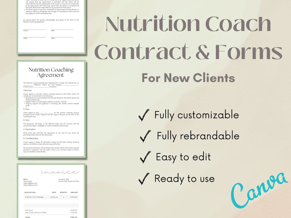 Nutrition Coach Agreement New Client Forms Health Wellness Coach