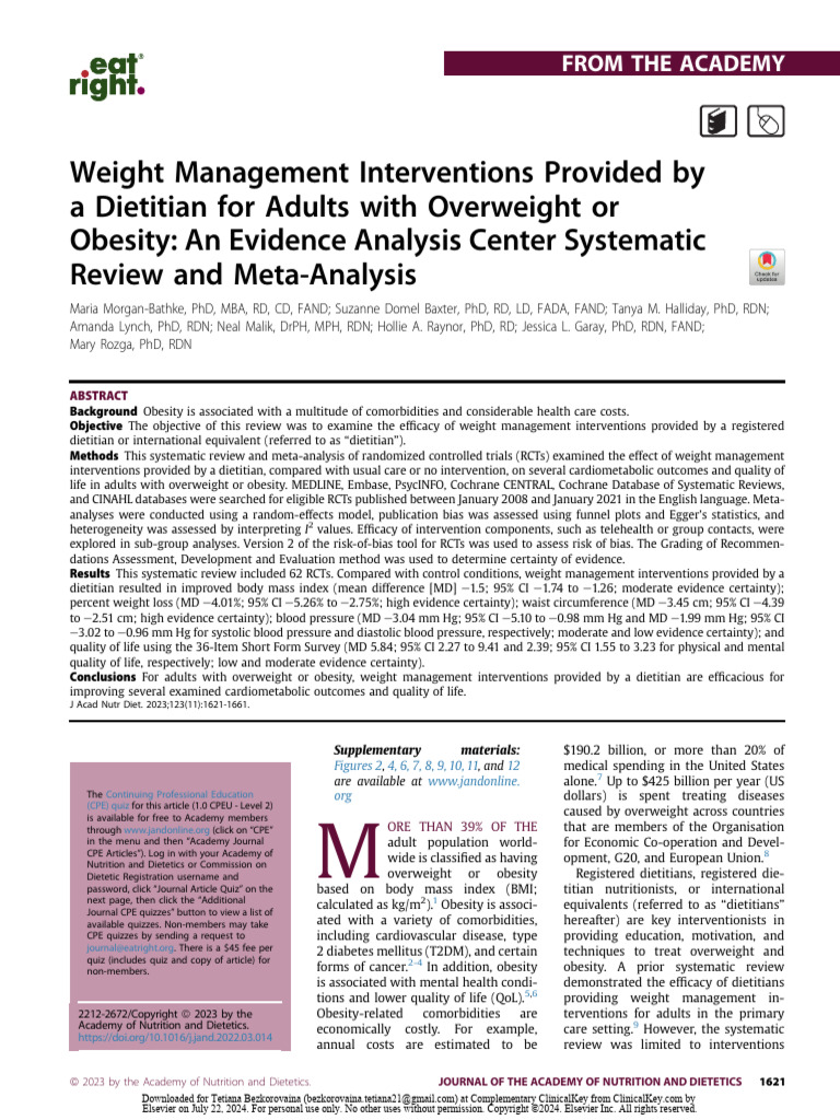 Weight Management Interventions Provided by A Dietitian For Adults With