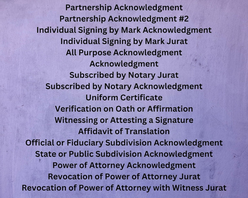 Custom Notary Certificates Loan Signing Jurats Acknowledgements
