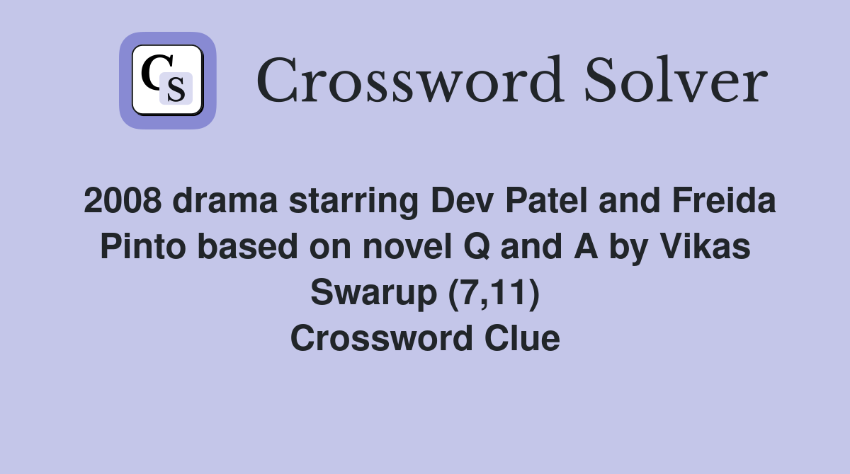 2008 drama starring Dev Patel and Freida Pinto based on novel Q and A